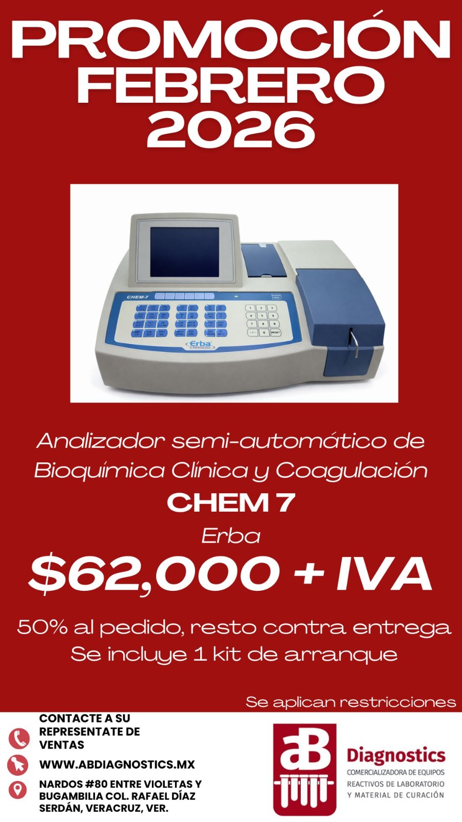 En AB Diagnostics ponemos a su disposición ofertas especiales en reactivos, equipos y consumibles para laboratorio clínico, seleccionadas para apoyar la continuidad operativa y optimizar costos al inicio del año.